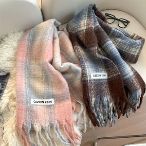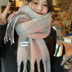 2024新型格子マフラー女性冬韓系高級感学生カップル百合保温防寒マフラー