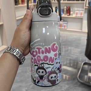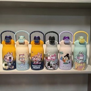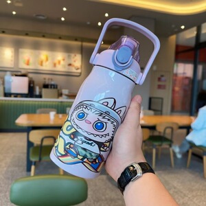 クロスボーダー新型グラデーション3dアニメ保温かわいいストローコップ学生高颜値大容量運動手提げポット