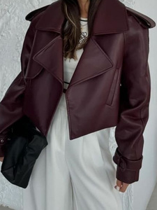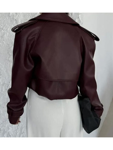 2024年秋冬欧米の越境爆発の気質の赤い茶色の皮の服のコートの女性のお姉さんの風の百合のファッションの潮流