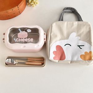 チーズランチボックス - ピンク + 木製箸とスプーン + バッグ