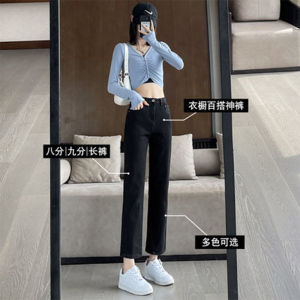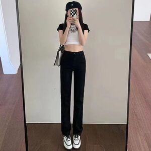 黒ベルベット厚手【8点ストレートパンツ】ストレッチ