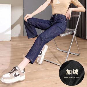 ダークブループラスベルベットと厚みのある【9点ストレートパンツ】ストレッチ