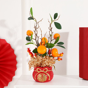 創意的なお祝いの福袋の花瓶のお正月の花のシミュレーションの花の金持ちになるザクロの果実の置物の新春の家の装飾の抱っこの桶