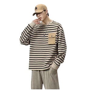 外国貿易の男性のストライプの長袖のシャツの男性のファッションのtシャツの男性のタイプのパーカーの秋の男性のメンズのボトムのシャツの春と秋の上着のファッション