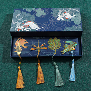 金属葉脈古風文創カラー透かし彫りのしおり蓮錦鯉古典風の美しい教師の日プレゼント