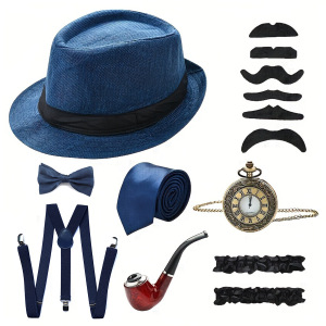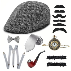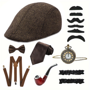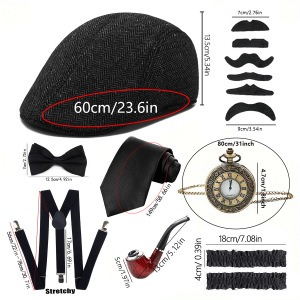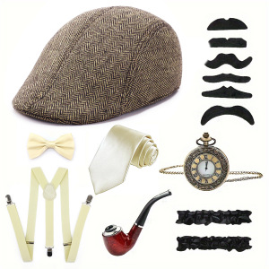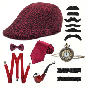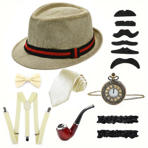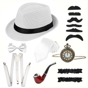 1920パーティ舞踏会男性セットレトロ英倫礼帽パイプ懐中時計ひげネクタイ現物