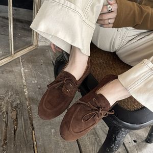 韓国のカジュアルなリラックス感のある靴の本革の平底の靴は深い口の靴の羊の反毛の新型の純皮の女性靴を結びます。