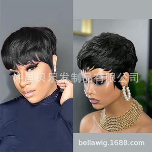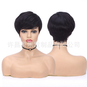 クロスボーダーの外国貿易の欧米のかつらの短いストレートの髪の黒色のファッションの短い髪の本当の髪の自由な形の完全な本当の髪のカバー