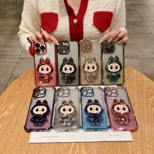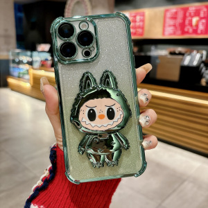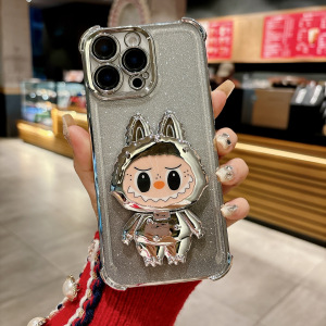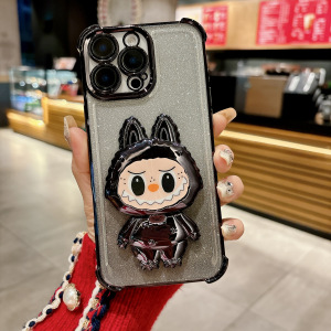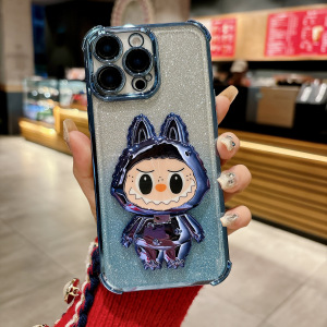 iPhone17PROMAX用スマホケース、16四隅電気メッキエアバッグ落下防止漫画スタンド付き、Apple15グラデーション