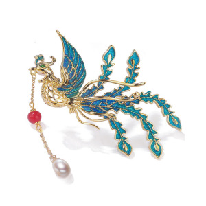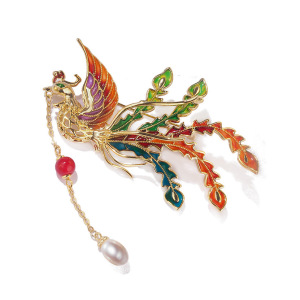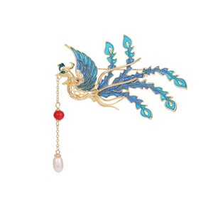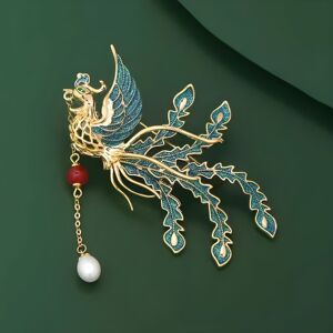 縁起の良いフェニックスブローチ、高級女性の古典的な気質の真珠のお祝いコサージュ、絶妙な中国風のスーツアクセサリーピン