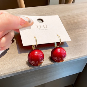 香港風のレトロな誇張の赤い真珠のイヤリングの女性の耳のボタンの気質の小さい大衆の独特な設計感の耳飾りの新型の潮