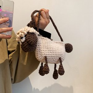国境を越えた子供用バッグ、新作のかわいい羊のぬいぐるみバッグ、女の子用の毛糸編みバッグ、アクセサリー、斜め掛けバッグ、外国貿易