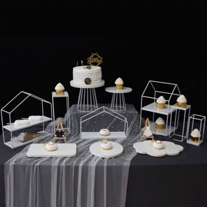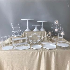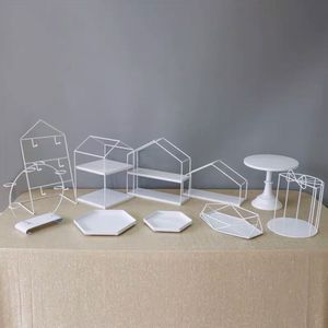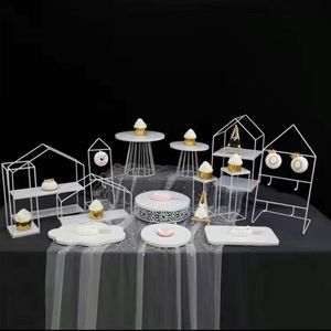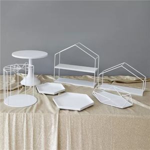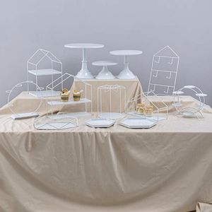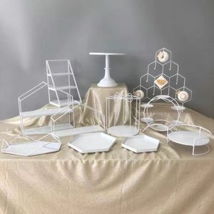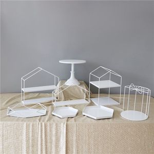 白い金属の鉄芸のデザート台の置物の展示棚のヨーロッパ式の午後のお茶のケーキのお菓子棚の冷たい食事のお茶の休憩台