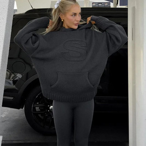 2025 ヨーロッパとアメリカの国境を越えた秋と冬 Y2K フード付きカジュアルレターニットトレンドルーズ男性と女性のセーター卸売