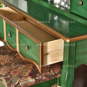 アメリカの田舎の化粧台の実木の化粧台の寝室の闘棚の一体のレトロな緑は古い収納テーブルを持って小型です。