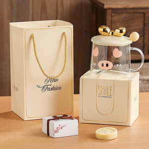 ベージュキュートなブタカップとスプーン蓋【ギフトバッグセット】