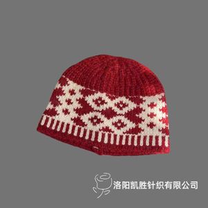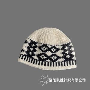 国境を越えたレトロな菱格ニット毛糸帽女性冬の韓国版の大頭囲は顔が小さい保温防寒包頭帽子である