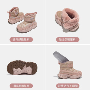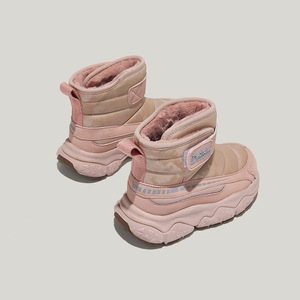 笛莎の女の子の雪地の靴の2024冬のベルベットの厚い運動の滑り止めの綿の靴の皮の表面の防水の東北の防寒