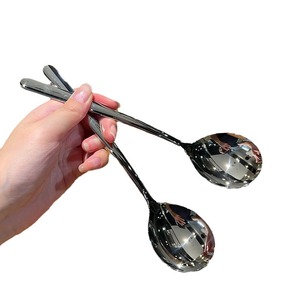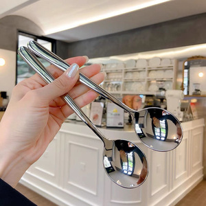 ステンレススプーン韓国式家庭用食事スプーンネット赤創意可愛いデザートスプーン長柄【スプーンを厚くする】