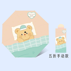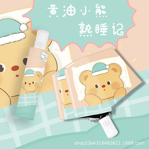Insバター熊熊かわいいアニメ三つ折デジタルプリント半遮光晴雨両用傘