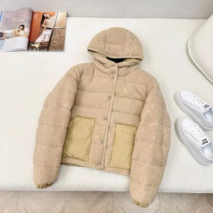 蒙家2024秋冬はポケットのテディベアをつなぎ合わせて帽子のコートの粒の毛の短いジャケットの保温のダウンジャケットの女性をつないでいます。