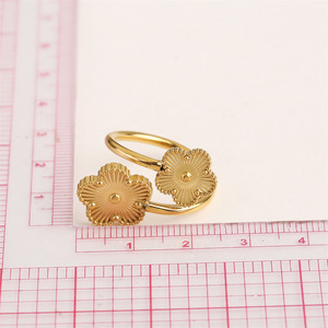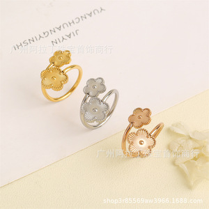創意設計クロスボーダー人気高品質チタン鋼双五葉花指輪幸運大サイズ五葉花活口指環