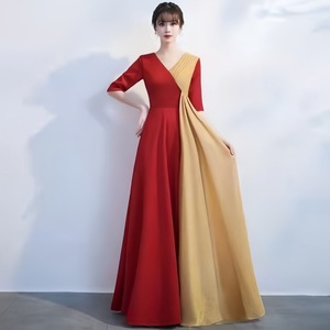 大きいサイズの大合唱団の出演服の女性の新型の長いスカートの気質の司会者の指揮者は朗読してワンピースの赤い歌を演じます。