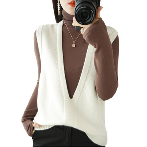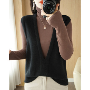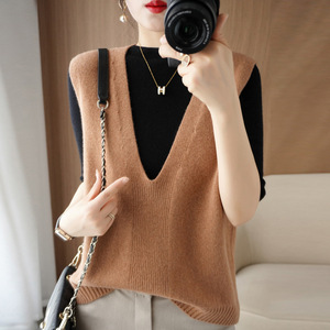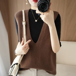 ウール混紡2024秋冬女装新短金ゆるいvネック純色ジャケット外着ニットベスト