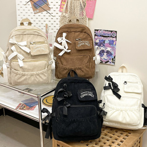 日本インススクールバッグ中学生高校生女子大学生バックパックリボンリボンコーデュロイバックパックスクールバッグ