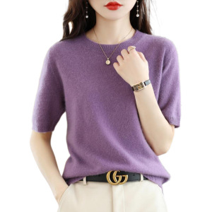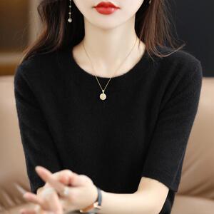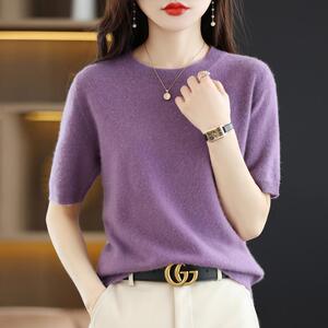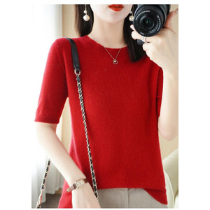 新商品のニット半袖のゆったりしたtシャツの中にセーターを掛けます。