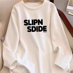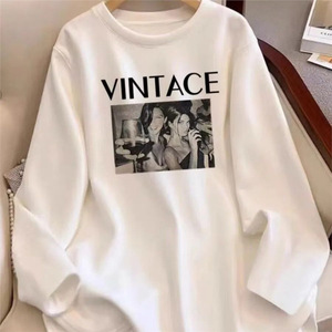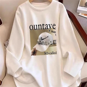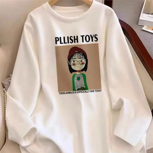 徳絨磨毛丸首長袖tシャツ女性の中の長さは厚い白い中に底のシャツの上着を掛けます。