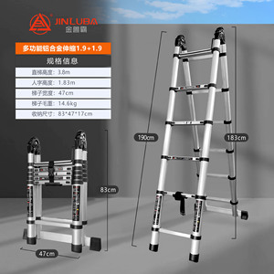 多機能アルミニウム合金伸縮はしご 1.9+1.9=3.8m