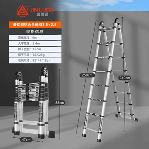 多機能アルミニウム合金伸縮はしご 2.5+2.5=5m