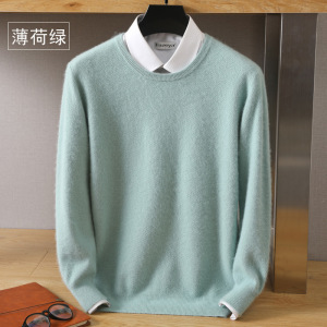 若い男性のミンクのセーターの韓国版の丸首の厚いセーターのゆったりしているファッションのウールのニットの底のシャツの卸売り
