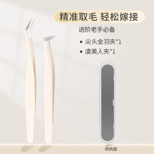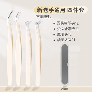 オフホワイト - まつげピンセット - ユニバーサルオールラウンド 4 点セット [ギフトボックス]