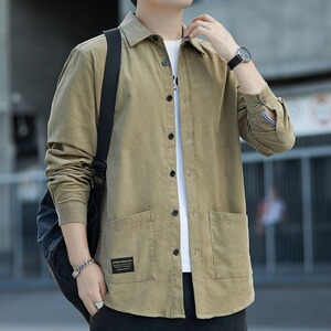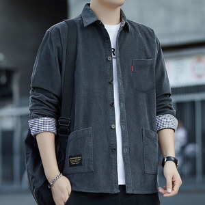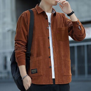 メンズ長袖シャツコーデュロイシャツコート春秋新作カジュアルポケットゆったりメンズ上着