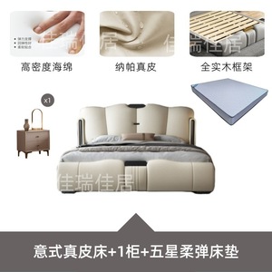 イタリアンレザーベッド + キャビネット 1 個 + ファイブスターソフトエラスティックマットレス