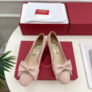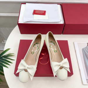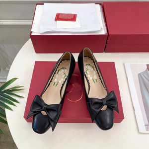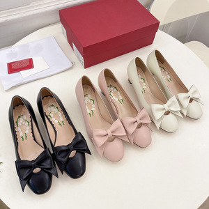 2025华家新款蝴蝶结单鞋V扣粗跟中跟圆头女鞋气质款经典高跟单鞋