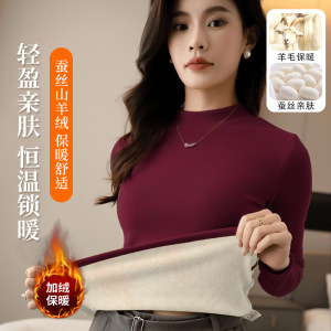 秋冬のベルベットのシルクのカシミヤさんの半高襟の柔らかい肌の保温ファッションに合わせてシンプルなベルベットの服を着ています