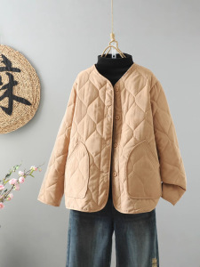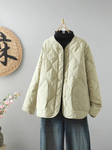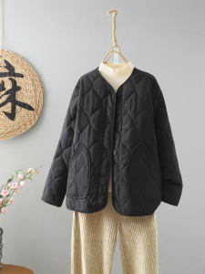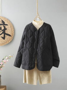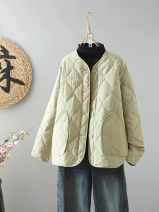 『欣幸』復古国風綿服保温綿長袖綿服女2024冬純色菱格コート女