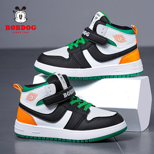 巴布豆童靴児童板靴熊猫靴秋冬金皮面防水男児中靴女の子カジュアル靴