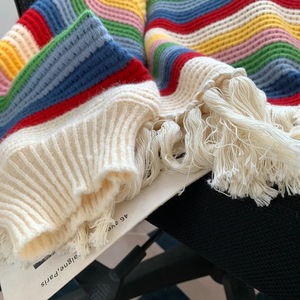 怠惰な風の虹の縞が色のセーターのプルオーバーの女性の秋冬のゆったりしている外はデザイン感のフリンジニットの上着を着ます。