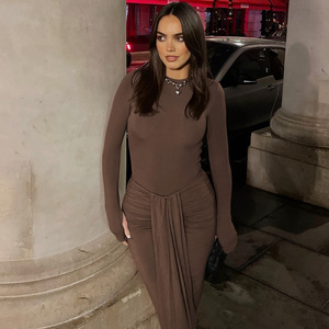 欧米風の婦人服の2024秋冬の新商品のファッションの個性の中で腰のひもは身を修めてやせている長袖のワンピースの卸売りを現します。