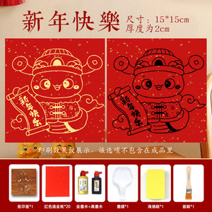 福字活字印刷拓印木版年画実木彫刻版印刷術子供非遺品手作りdiy材料