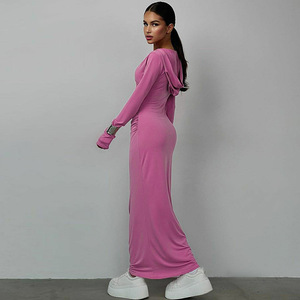 速売通クロスボーダー女装2024秋の新商品ファッション帽子付き長袖カジュアル純色着痩せワンピース卸売り