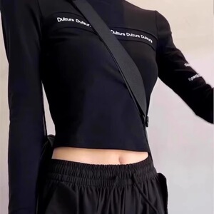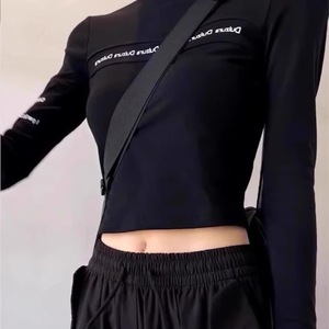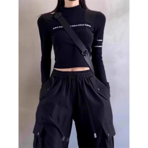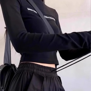 【260グラム綿モーデール】甘いギャルの短い上着冬の女性のアメリカの黒い中に肩の長袖のtシャツを掛けます。