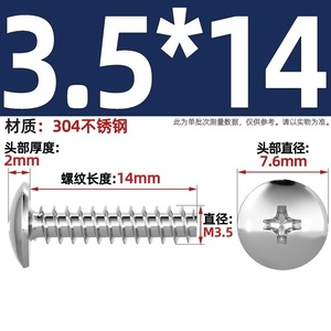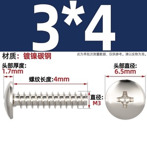 TBニッケルメッキ/黒/304ステンレス十字大平頭平尾タッピングねじキノコ頭ねじm3m3.5 m4