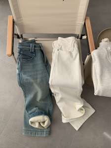 Omalai 裏起毛厚手ハイウエストスリムジーンズ女性用冬ストレートルーズ小柄9点パンツ1771