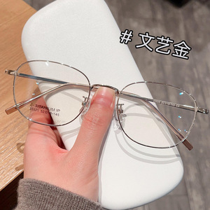 新しい超軽量インターネットセレブ非磁性金属レトロラウンドフレームメガネフレーム女性用、度付きメガネフレームを装備可能