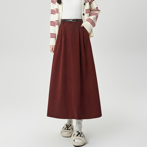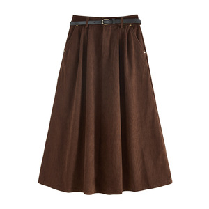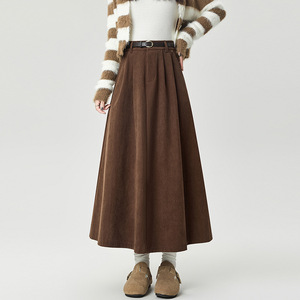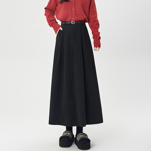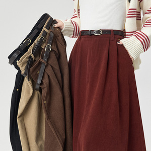 実物写真 ライトコットン素材のレディーススカート 秋冬2025 ヴィンテージ風 着痩せ効果 ミモレ丈 股間をカバーするAラインスカート